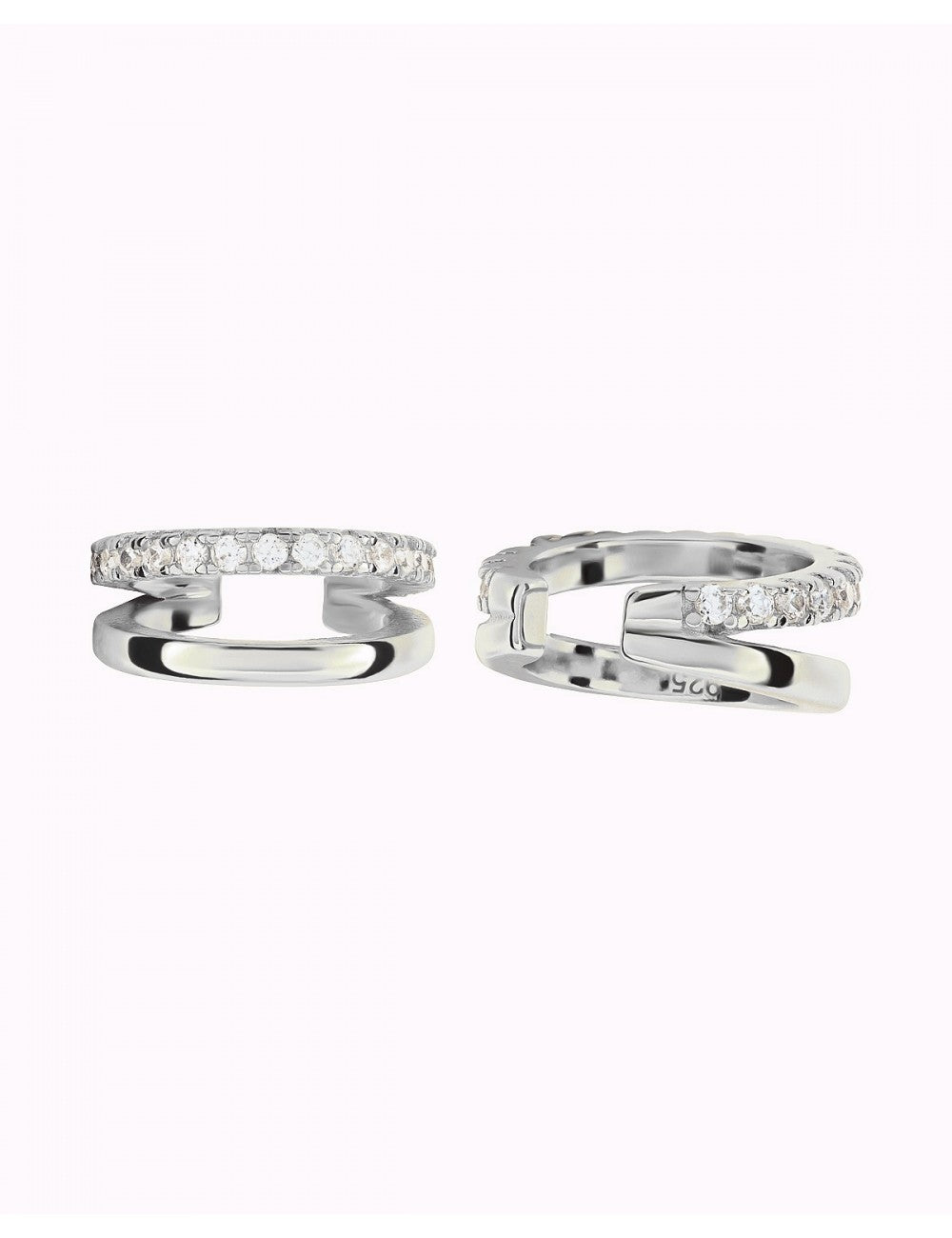 Doppelreihige Conch-Ohrmanschetten-Ohrringe mit Pavé-gefassten Zirkonen