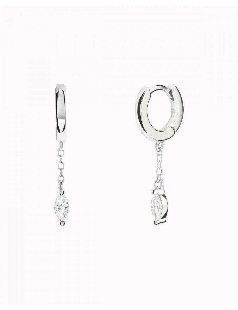 Huggie-Creolen mit Kettenanhänger und Zirkonia im Marquise-Schliff
