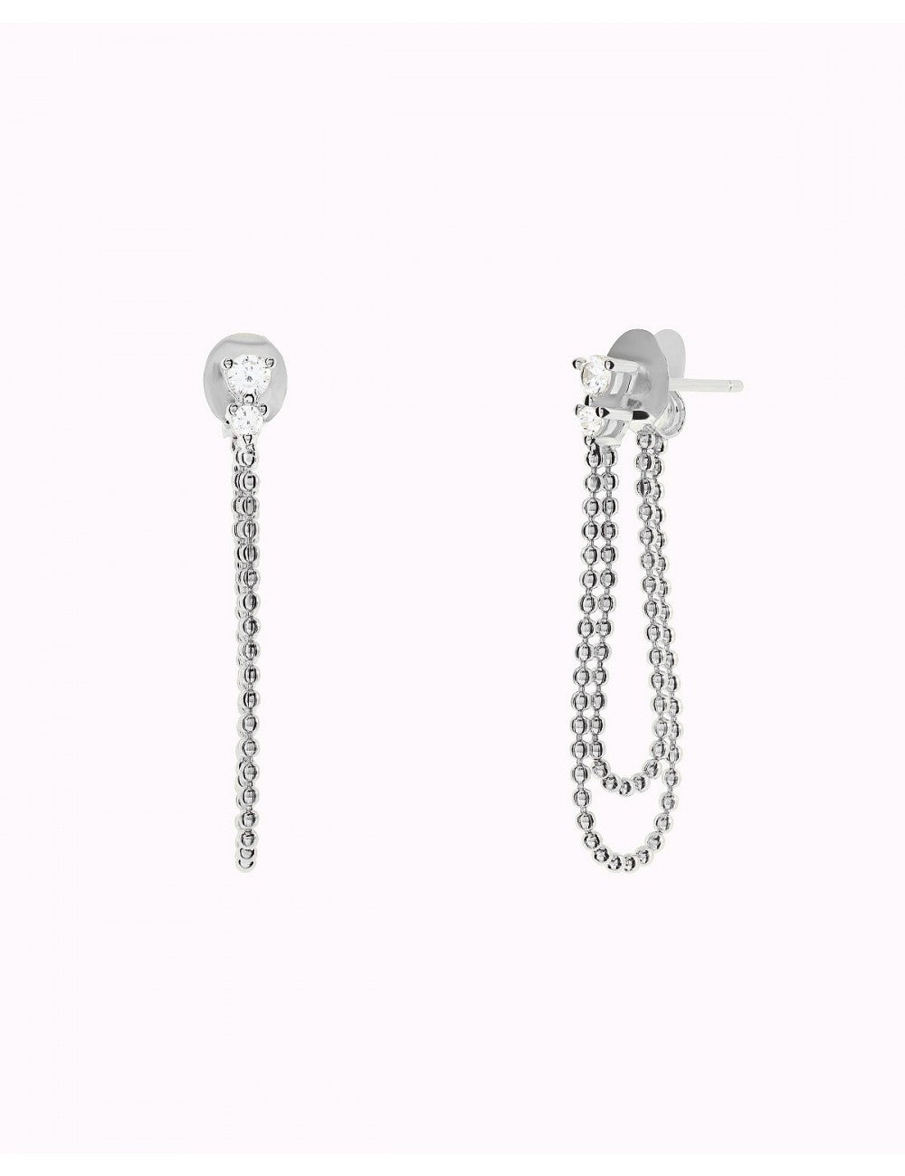 Ohrstecker mit 3-zackigen Zirkonen und doppelter Kugelkette